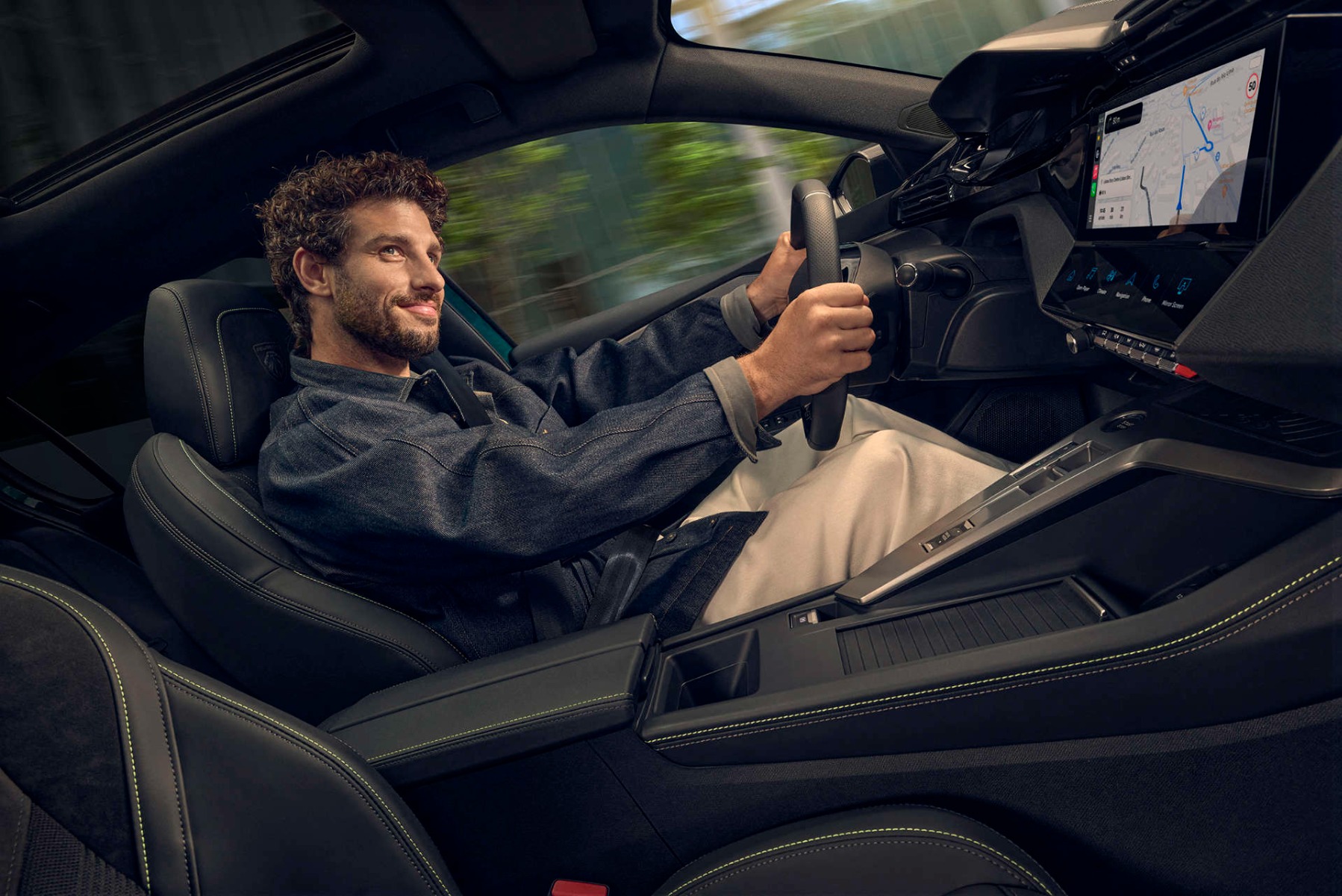 Динамічність зовнішнього дизайну знаходить своє продовження і всередині автомобіля: візуально «чисті» лінії салону, бездоганне поєднання панелей, контрастний 10-дюймовий центральний сенсорний екран. Унікальна архітектура передньої панелі опрацьована так, щоб звільнити максимум простору для водія та пасажира на передньому сидінні, а високоякісні матеріали оздоблення (наприклад, справжній алюміній та покриття Alcantara®) додатково посилюють відчуття комфорту.