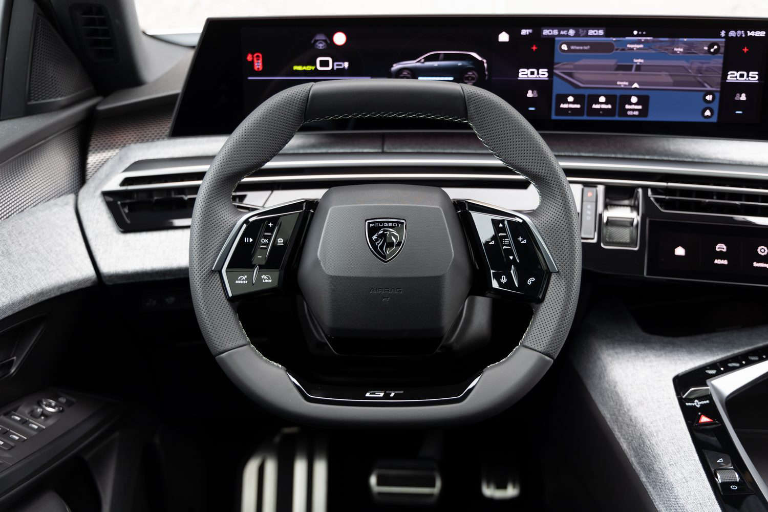 Камера заднього огляду 180 та датчики паркування спрощують маневрування в умовах тісних вулиць. Сидіння водія AGR гарантує максимально комфорту посадку; а оздоблення салону темно-сірою тканиною Crispy з елементами шкіри додає відчуття преміального світу. Концепція внутрішнього простору Peugeot Panoramic i-Cockpit з двома 10-дюймовими дисплеями гарантує швидке зчитування інформація та можливість керування мультимедійною системою.