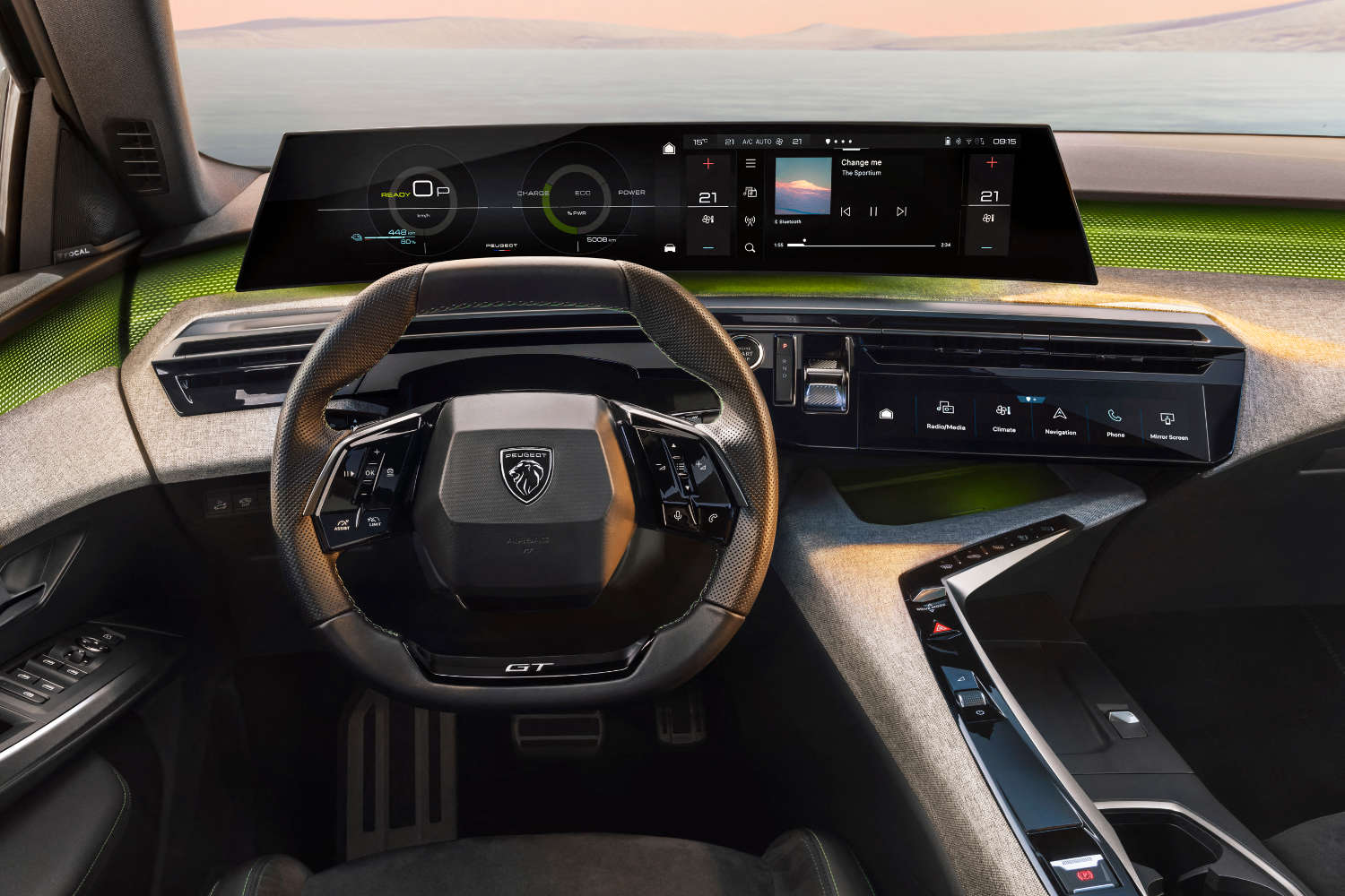 Всередині автомобіль вражає не лише надзвичайним простором та комфортом, але й високотехнологічним облаштуванням салону PEUGEOT Panoramic i-Cockpit® з кількома дисплеями: проекційний дисплей HUD для водія, великий центральний сенсорний дисплей, цифрова кольорова панель приладів. Причому окремі елементи можуть бути інтегровані у єдиний вигнутий панорамний екран у вигляді суцільної 21-дюймової (53,3 см) HD-панелі.
